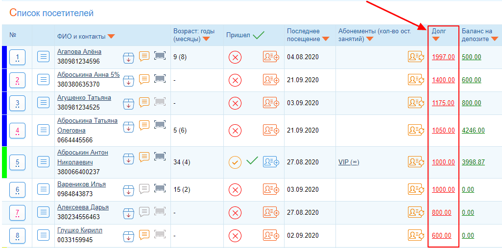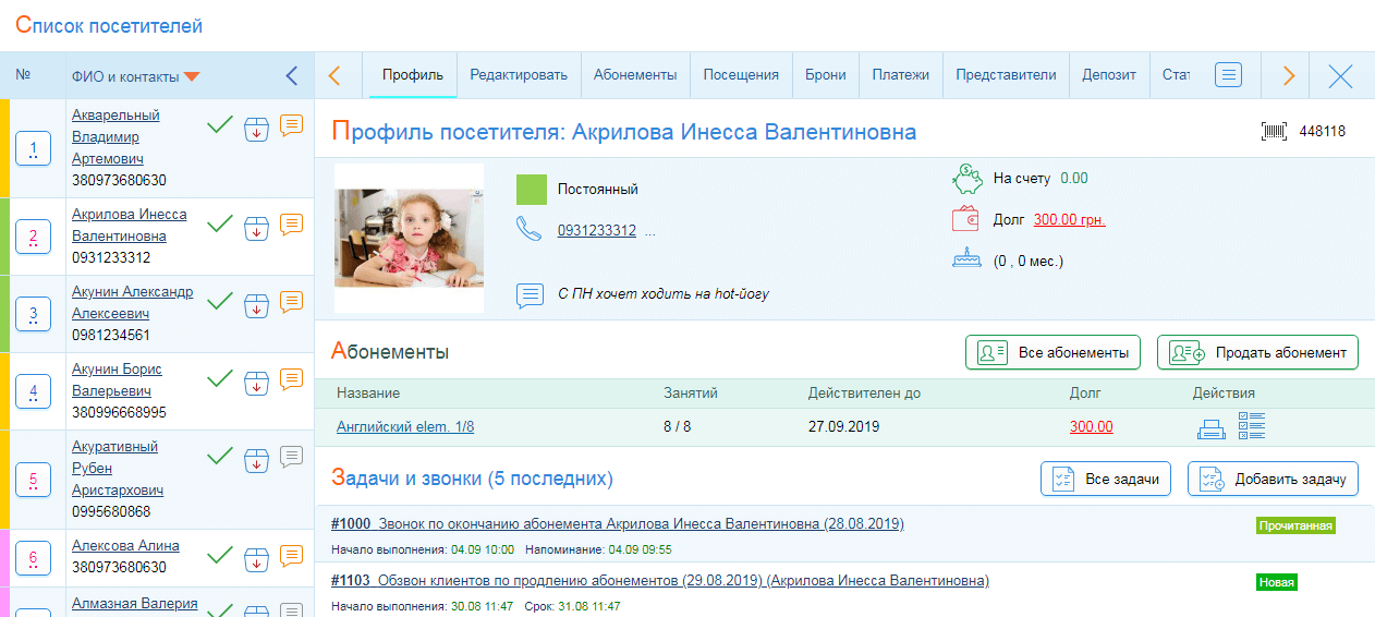 А еще представьте, насколько неудобно и неинформативно учитывать частые погашения долга одним клиентом или посещения одного клиента по разным абонементам. А когда таких клиентов у вас будет сотня, две, три? В Ваших таблицах начнут путаться не только Ваши администраторы, но и Вы сами.