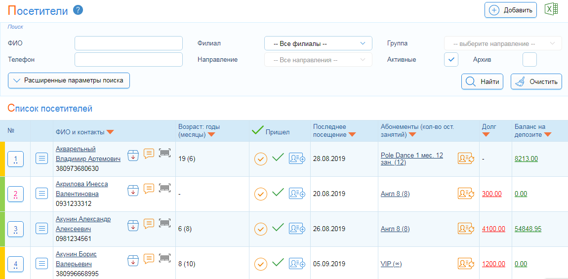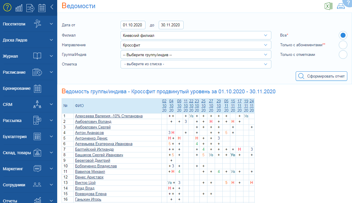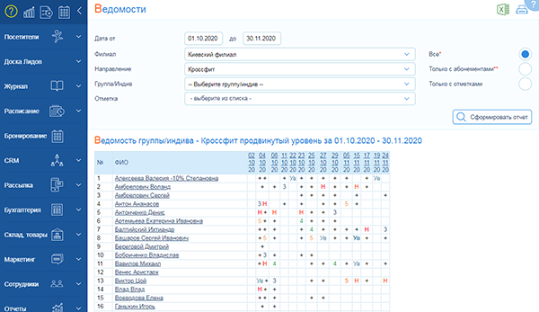 А также в Excel вы не увидите посетителей, которые не посещали занятия вот уже месяц и которым ваши администраторы ни разу не звонили, чтобы узнать причину столь длительного отсутствия.