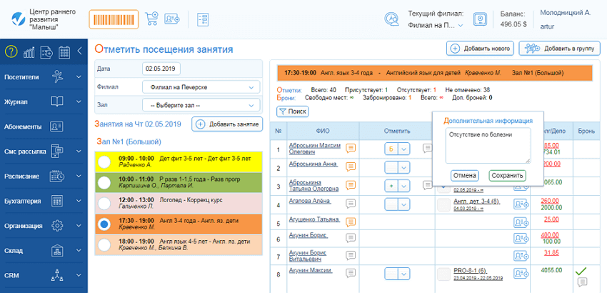 Всех этих проблем и других, которые вас подстерегают на пути развития детского центра, фитнес клуба, йога студии или любой другой организации в сфере образования или спорта, можно избежать, используя в своей работе подходящую систему по ведению учета или CRM.