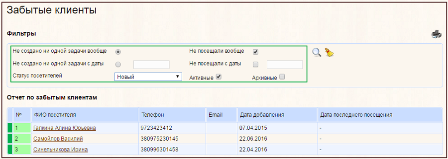 Добавлен отчет по Дням Рождения, автоматическая нумерация квитанций, поиск посетителей по номеру телефона