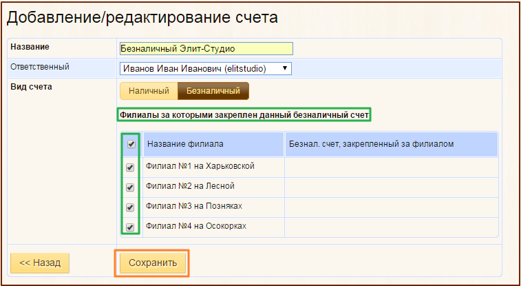 Привязка нескольких касс и безналичных счетов к филиалу, Бронирование клиентов через профиль и многое другое