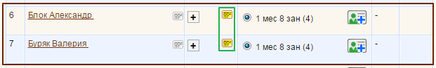 После выставления отметки о посещении в колонке "Отметить" появляется кнопка для комментария.