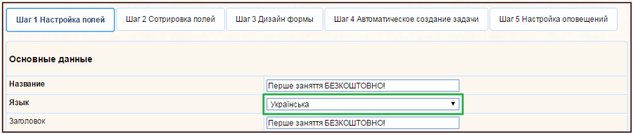 Опция выбора языка размещена в Шаге 1 создания и настройки формы захвата контактов.