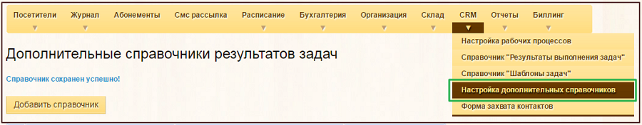 Перейдите на страницу пункта меню CRM – Настройка дополнительных справочников.