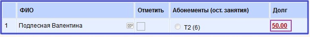Добавлена возможность погасить долг со страницы Журнала. В окне оплаты долга добавлено отображение даты, когда была произведена первая оплата за абонемент.
